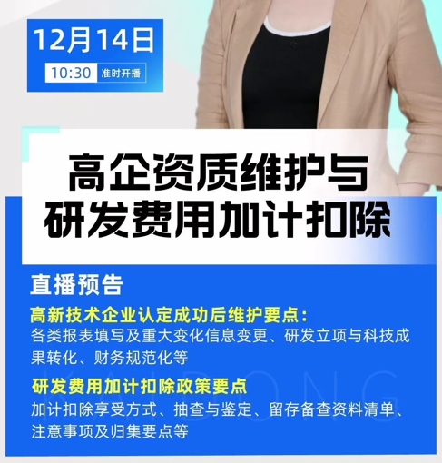 >>新聞資訊>>凱東直播預告:高企資質維護與研發費用加計扣除
