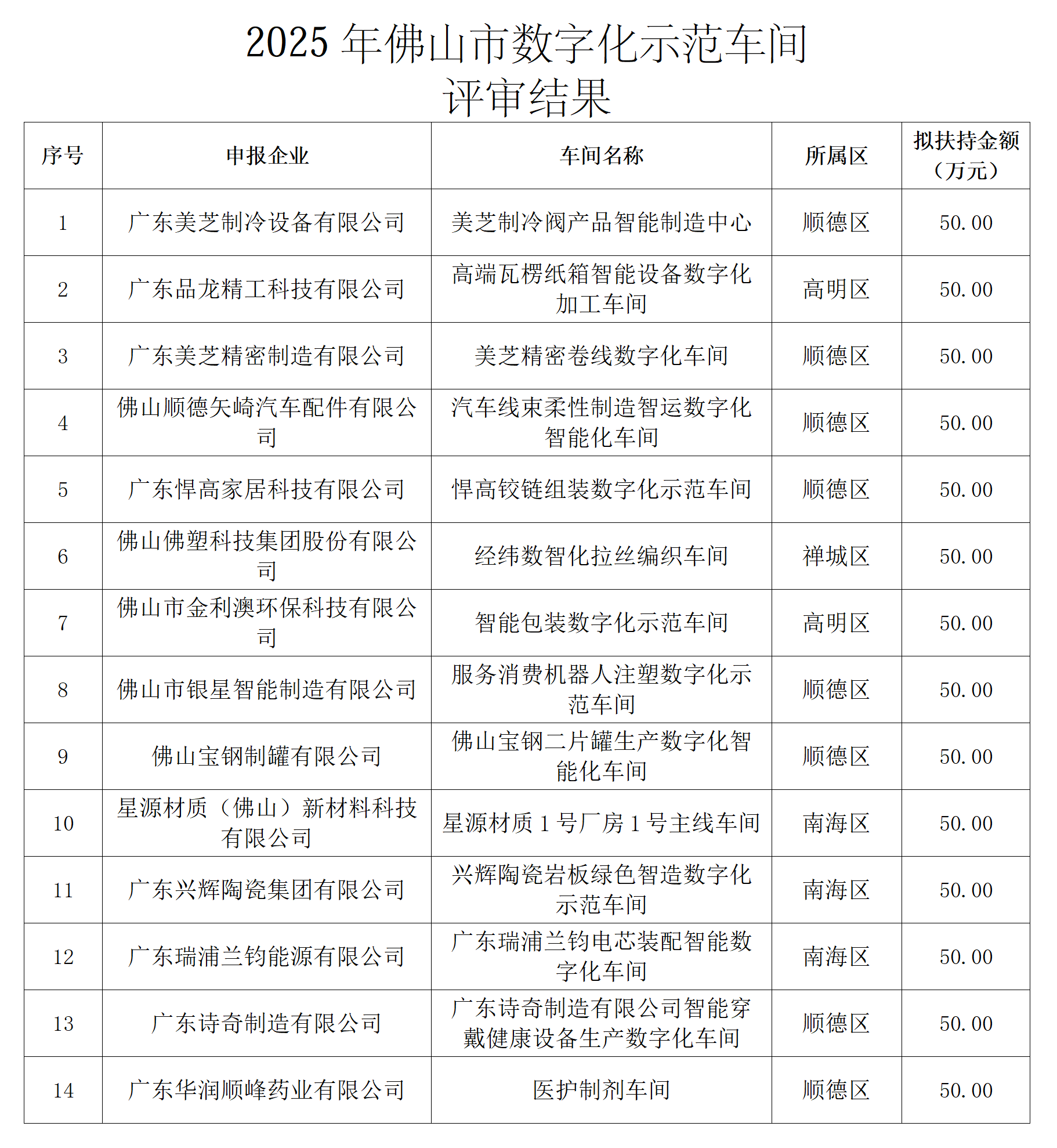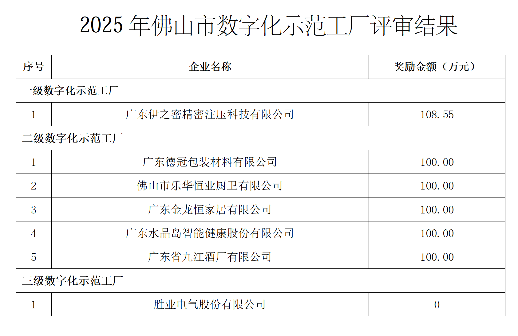 關于2025年佛山市數字化示范工廠、示范車間評審結果的公示