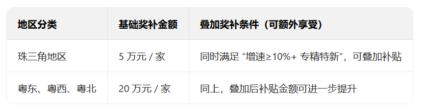 一、小微工業企業 “小升規” 獎補:最高 20 萬元 / 家,粵東西北補貼力度更大